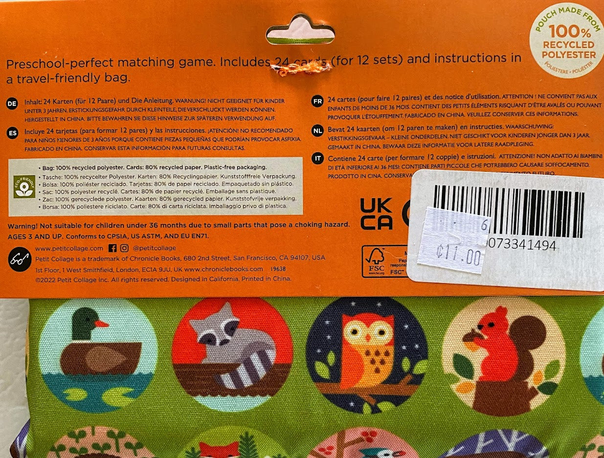 Pre-school perfect. 24 cards. Ages 3+. Comes in a travel-friendly pouch made of 100% recycled polyester.