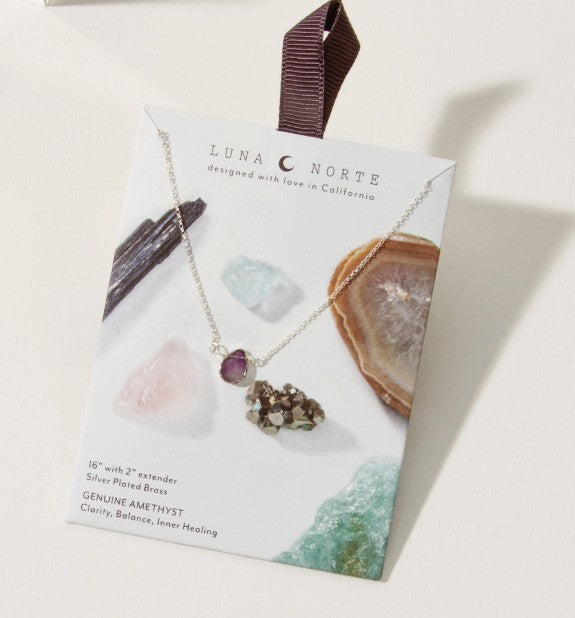 Amethyst=Clarity, Balance ,Inner Healing. 16" with 2" extender Silver Plated Brass Chain.